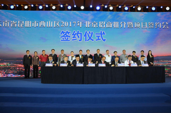 | 9月29日,財信集團受邀參加云南省昆明市西山區2017年北京招商推介暨項目簽約會,并在會議上與昆明西山區政府簽署了《基礎設施、城市更新改造項目戰略合作框架協議》。按照協議,西山區政府將財信集團作為重要的戰略合作伙伴,在基礎設施、公共及教育服務、城市更新改造、生態環保、金融服務等方面進行友好合作,擬合作項目投資總金額不低于80億元。 |