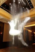 | 麗晶宴會廳/多功能會議區 酒店內各個公共空間依然追求對稱的概念。四樓前往五樓的一座廊橋將客人帶過一片高達兩層樓的「梯田藝術品墻」,深綠淺綠交錯、氤煙霧氣的潑墨感,將山城的梯田景致刻畫的如詩如畫。 進入薩塔宸/開齊藝術兵工廠藝術品陳列區:重慶曾是中國抗日戰爭的大后方及戰時首都,積極發展重工業之下有不少的兵工廠遺跡,薩塔宸/開齊藝術親自到重慶廢棄兵工廠買回部分兵器模具,選用不同的藝術工匠手藝創造出獨特的兵工廠藝術品。通過不同的拋光打磨、酸洗、鎏金及琺瑯彩等工藝技法,并與銅、琉璃、陶瓷、木頭等新材料組合,表現老兵工廠新時代的藝術特性。 宴會廳素雅的壁布墻面襯托著水晶吊燈,一盞盞如凍在冰塊中的山茶花,通過吊燈的高低變化,營造出“人在燈下走,花在燈間動”的意境。三面大幅透明落地窗的設計,270度環繞,攬入渝中洪崖洞以及對岸的無敵山城美景。 兩江吧 泳池