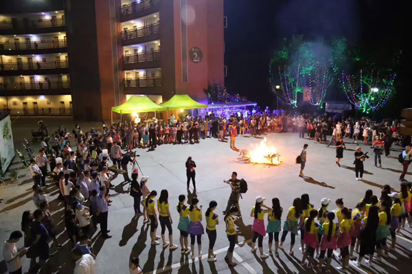| 5月27日晚上8:30,國際旅游小姐走進大足龍水湖旅游度假區,打響了龍水湖旅游度假區水樂園開園第一槍。27日當晚,五十名國際旅游佳麗身著黃色休閑靚麗短袖,款款向龍水湖走來,隨行而來的還有幾十家來自五湖四海的媒體朋友。龍水湖旅游度假區全體員工熱情友好地以融入龍水湖特色的篝火晚會、火把節舞蹈接待了所有的佳麗朋友,現場的篝火也因佳麗們的到來而變得異常熱烈。 |