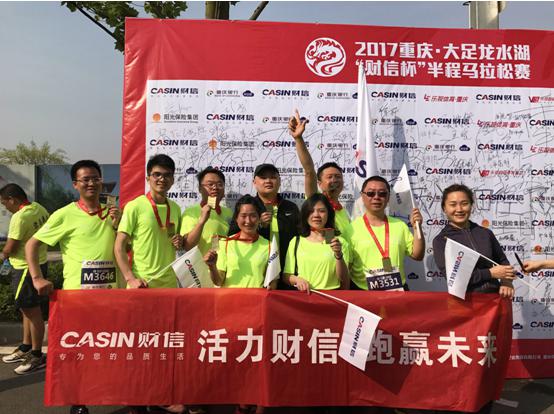 | 作為此次馬拉松賽的冠名贊助商及承辦單位之一,財信集團總裁彭陵江、財信發展董事長唐昌明、財信集團總裁助理楊昌文出席了本次活動。本屆比賽吸引了來自京、津、川、黔、渝及香港等各地各界跑馬愛好者共計6000人共同參賽。馬拉松比賽分為半程馬拉松、迷你跑(7公里)兩個組別,其中迷你跑增設了親子組,來自各地的跑友們將途經溫泉水世界、龍水湖五湖景觀漫游步道、龍水湖松鶴島戶外運動公園等景點。 4月末,已是初夏暖暖的味道。清晨6點多,涼風習習,朝霞已把天空印得紅彤彤的。熱情似火的跑友們,個個神采奕奕,已經在賽道起跑點上開始熱身。早上8點整,隨著一聲響亮槍鳴,由各子公司10多名員工組成的財信跑團高舉大旗,激情昂揚地隨著人流沖出了起跑線。大家在賽道兩旁如雷貫耳的吶喊聲、助威聲中,邁著矯健的步伐,你追我趕、相互協作,一邊享受運動帶來的快樂,一邊欣賞綠樹成蔭的風光,可謂是“揮汗林蔭中,一路賞風景”。 |