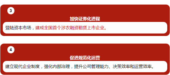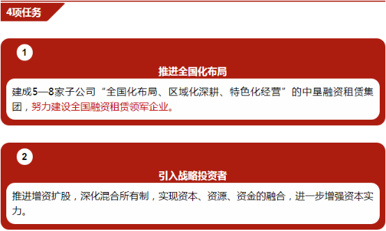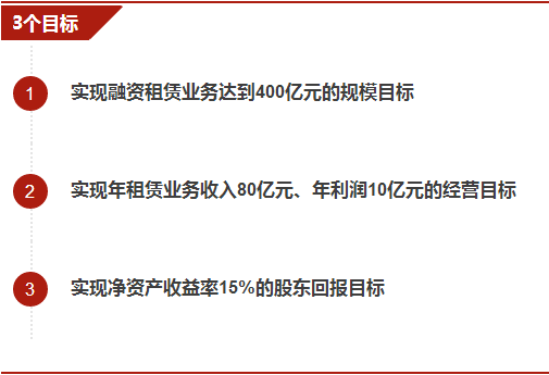 中墾融資租賃提出“334”發展思路,即通過三到五年的努力,立足3個定位、實現3個目標、實施4項任務: