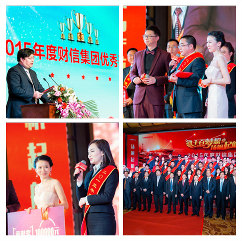 2016年1月30日下午,財信集團2015年度工作總結暨優秀表彰會于重慶金源大飯店3樓宴會廳隆重舉行,集團及各公司領導、特邀嘉賓、重慶主城區、異地公司、異地項目的同事,以及獲獎的優秀個人和團隊,共計500人出席會議。