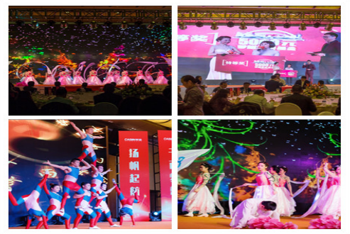 晚上6點整,2016年度新春團拜晚宴正式開始,一首由財信員工自己改編,自己錄制的MTV《我相信》引爆全場,精彩的開場舞《破繭》、雜技表演《步步高升》,以其精彩的表演和深刻的寓意博得現場觀眾的陣陣掌聲。隨后彭總登臺祝酒辭,在感謝和祝福在場的來賓朋友的同時,再次對公司未來的發展給與了描繪,大家共同舉杯,迎接新年的到來。