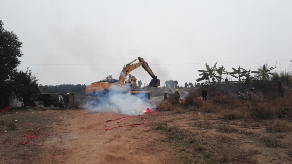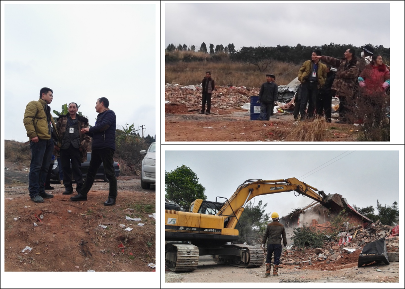 財信渝成總經(jīng)理李靖波、副總吳爽,茶店鎮(zhèn)副鎮(zhèn)長牛忠江、統(tǒng)籌部主任湯明宇等親監(jiān)現(xiàn)場監(jiān)督工作。施工現(xiàn)場,李總關(guān)切的對拆遷部現(xiàn)場員工說,如此嚴(yán)寒的天氣,你們?nèi)匀灰恢眻允卦谏缴媳O(jiān)督施工的進度,辛苦了,拆遷部負責(zé)人付強說:只要工期能按時完成,我們的付出就是有價值的。樸實的話語體現(xiàn)了的拆遷部的心聲,也體現(xiàn)了作為四川財信每一個員工的工作態(tài)度。