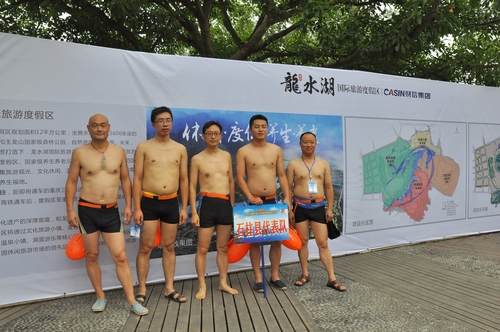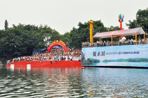 8月8日是中國全民健身日,為慶祝第六個全民健身日,由重慶市體育局、重慶市市直機關工委、大足區政府主辦,大足區龍水湖國際旅游度假區管委會,重慶財信企業集團協辦的2014“全民健身日”重慶市公開水域游泳比賽,于8月8日上午在大足龍水湖國際旅游度假區內舉行并取得圓滿成功。