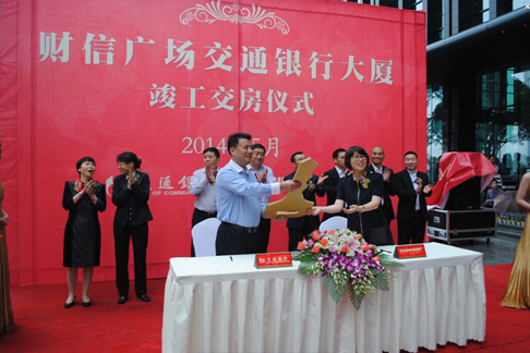 | 5月21日,財信廣場交通銀行大廈竣工交房儀式隆重舉行。出席本次儀式的有交通銀行重慶分行和財信地產集團主要負責人,以及共同協力參與項目工程建設的合作伙伴和社會各界人士。 上午9點50分,儀式正式開始。在現場來賓的共同注視下,交通銀行重慶分行副行長李小平與財信地產副總裁解媛媛共同簽署具有歷史意義的“財信廣場交通銀行大廈竣工交房紀念冊”,并由解總將象征打開財富之門的“金鑰匙”移交給李副行長。隨后,雙方領導共同推開交通銀行大廈大門,邁進嶄新的建筑體內參觀。參觀完成后,交通銀行領導們對大廈的建筑工程質量給予了高度的評價,對項目建設工作給予了充分的肯定。 財信廣場交通銀行大廈順利竣工交房。凝聚了各級領導、各界同仁的大力支持與幫助,凝聚著公司管理層和廣大員工的心血和汗水。交通銀行大廈順利竣工交房,標志著財信地產與交通銀行攜手邁入新的發展階段,雙方合作更上新臺階! |