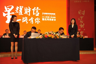 2014年1月18日,財信集團2013年度工作總結暨優秀表彰會議在金源大酒店隆重召開。會議共分三項議程:對2013年集團各項經營工作情況進行了總結,對2014年集團工作進行總體部署;集團與各子公司簽署了經營目標責任書;對在2013年工作中表現優異的個人進行表彰。集團公司、各子公司經理級以上人員及優秀員工代表共計400余人參加了本次會議。會議由集團副總裁夏勇先生主持。