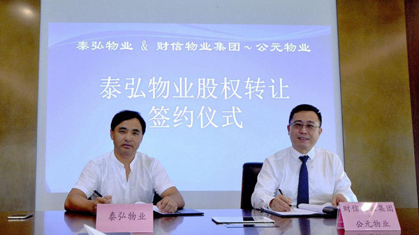 8月31日下午,在重慶市江北嘴的財信集團總部,財信物業旗下深圳公元物業與寧鄉桐廬酒店管理有限公司,就湖南泰弘物業管理有限公司股權轉讓簽署了合作協議。這標志著財信物業正式進入湖南長沙市場,其擴張步伐又邁出了堅實的一步。