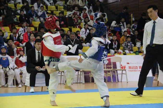 跆拳道比賽在專業場地中采用電子打分系統,有多名國家級裁判執裁,來自重慶市23個區縣青少年宮的近400名跆拳道小將互不相讓,飛踢、旋轉、咬牙拼搏,將賽事推向一波波高潮,盡顯跆拳道帶來的競技魅力。本次跆拳道比賽是重慶市青少年人數最多、規模最大、最高端的跆拳道賽事。