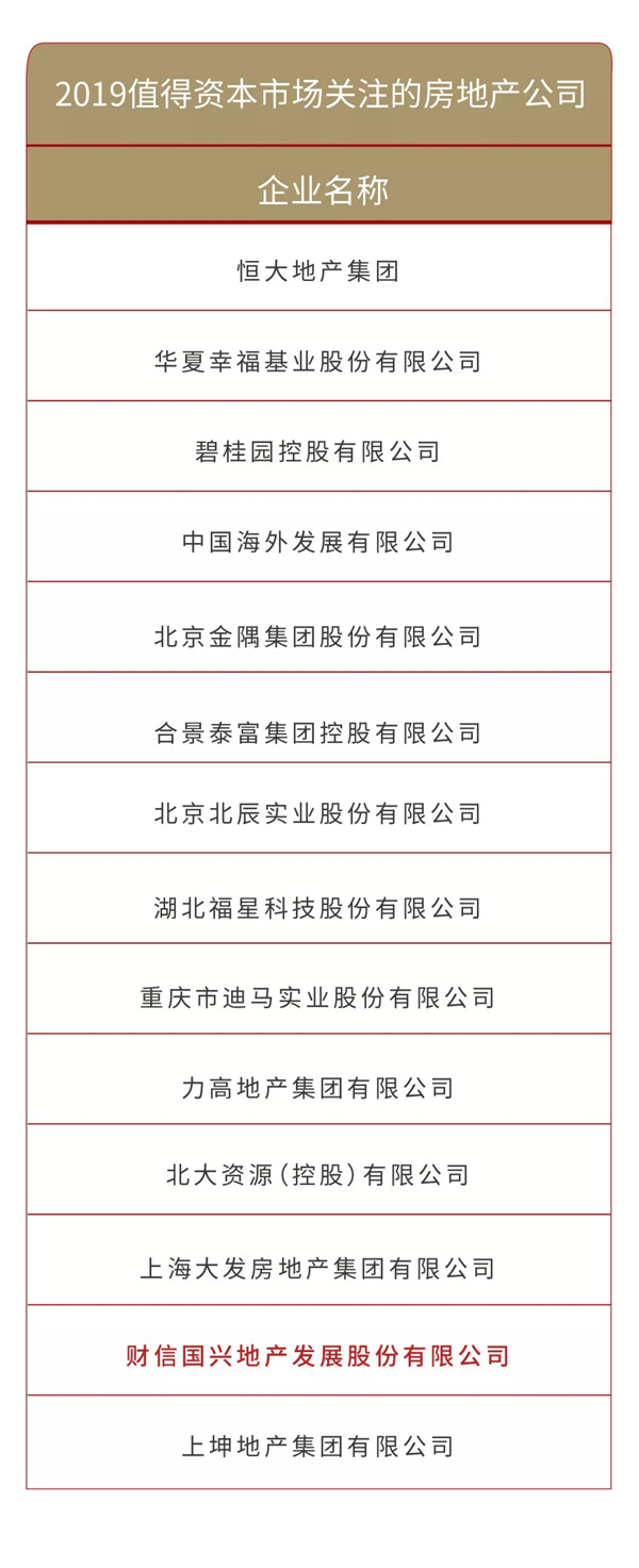 地產(chǎn) | ?財(cái)信發(fā)展榮膺“2019值得資本市場(chǎng)關(guān)注的房地產(chǎn)公司”